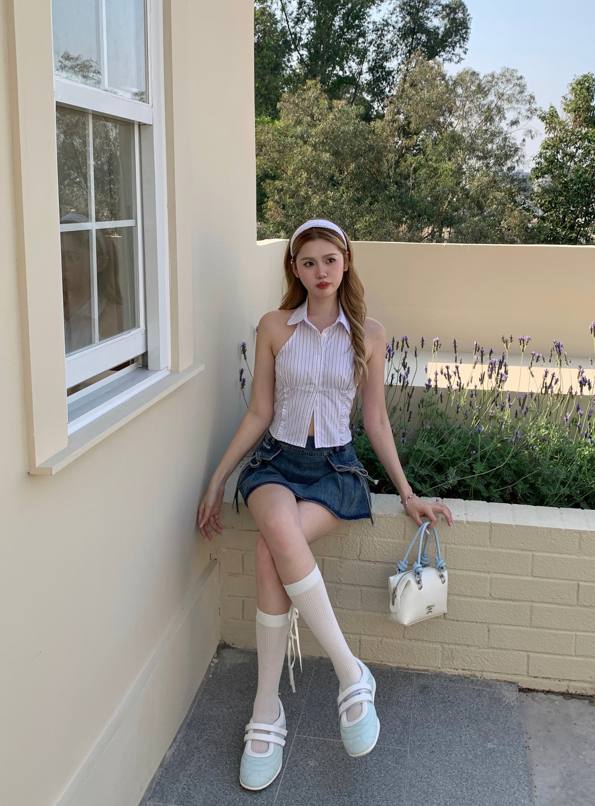 无袖收腰衬衫上衣