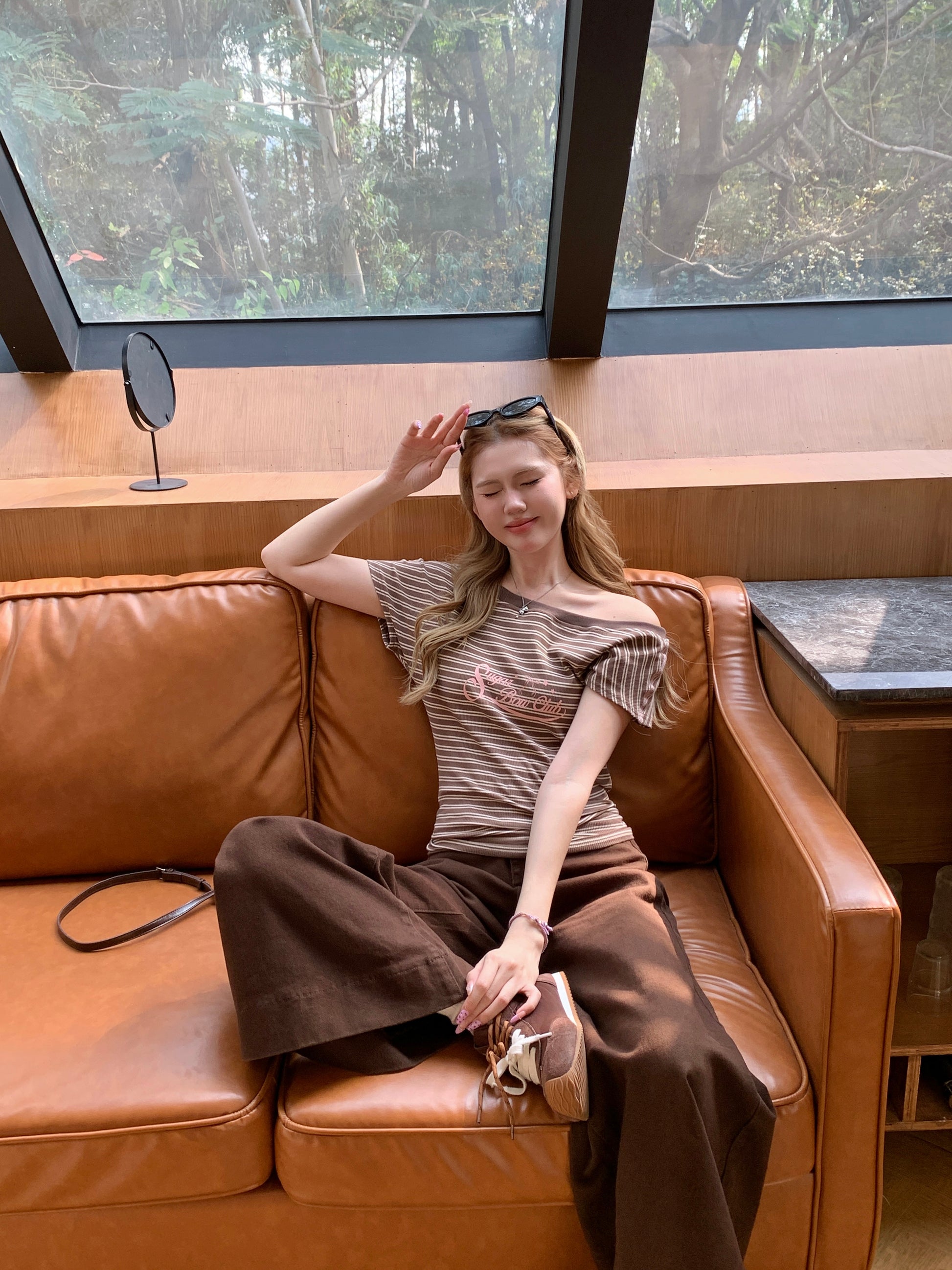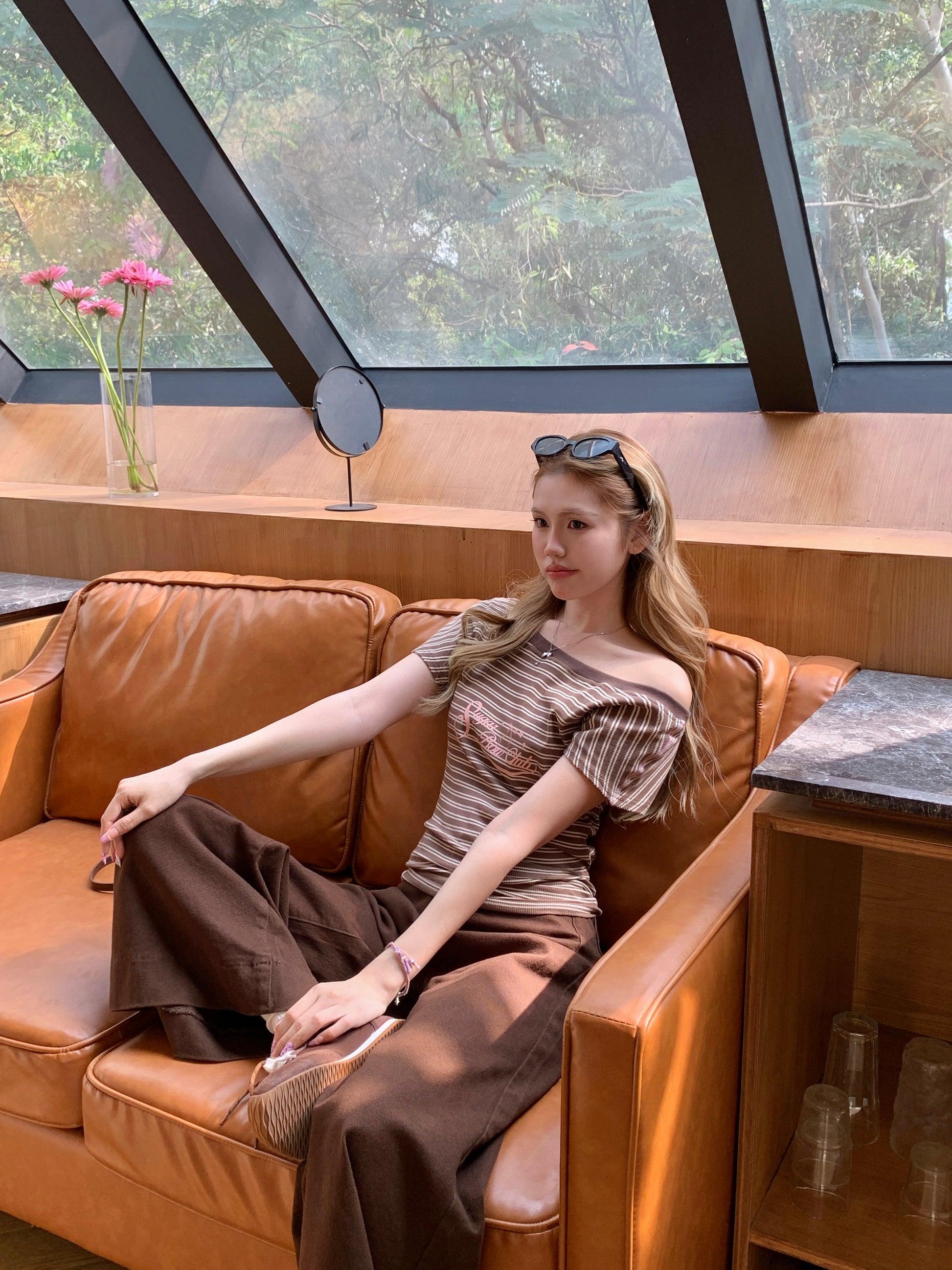 卸肩领型设计修饰肩颈线条